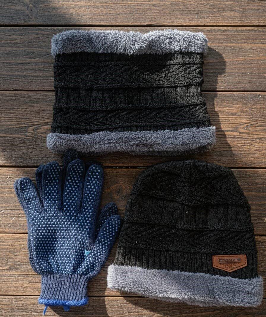 Beanie, neck gaiter, and gloves — three essentials in one pack for full head, neck, and hand warmth.